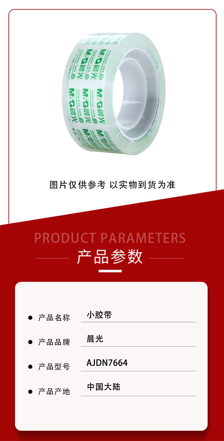 商品名称:晨光 AJDN7664 18mm*30y(27.42米/卷) 单卷装 小胶带(单位:卷)