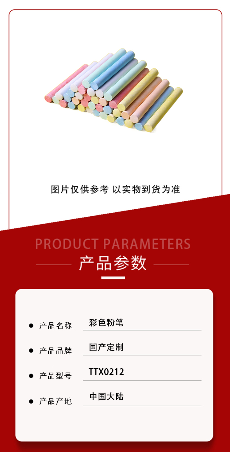 商品名称:国产定制 TTX0212 48支/盒 彩色粉笔 彩色(单位:盒)