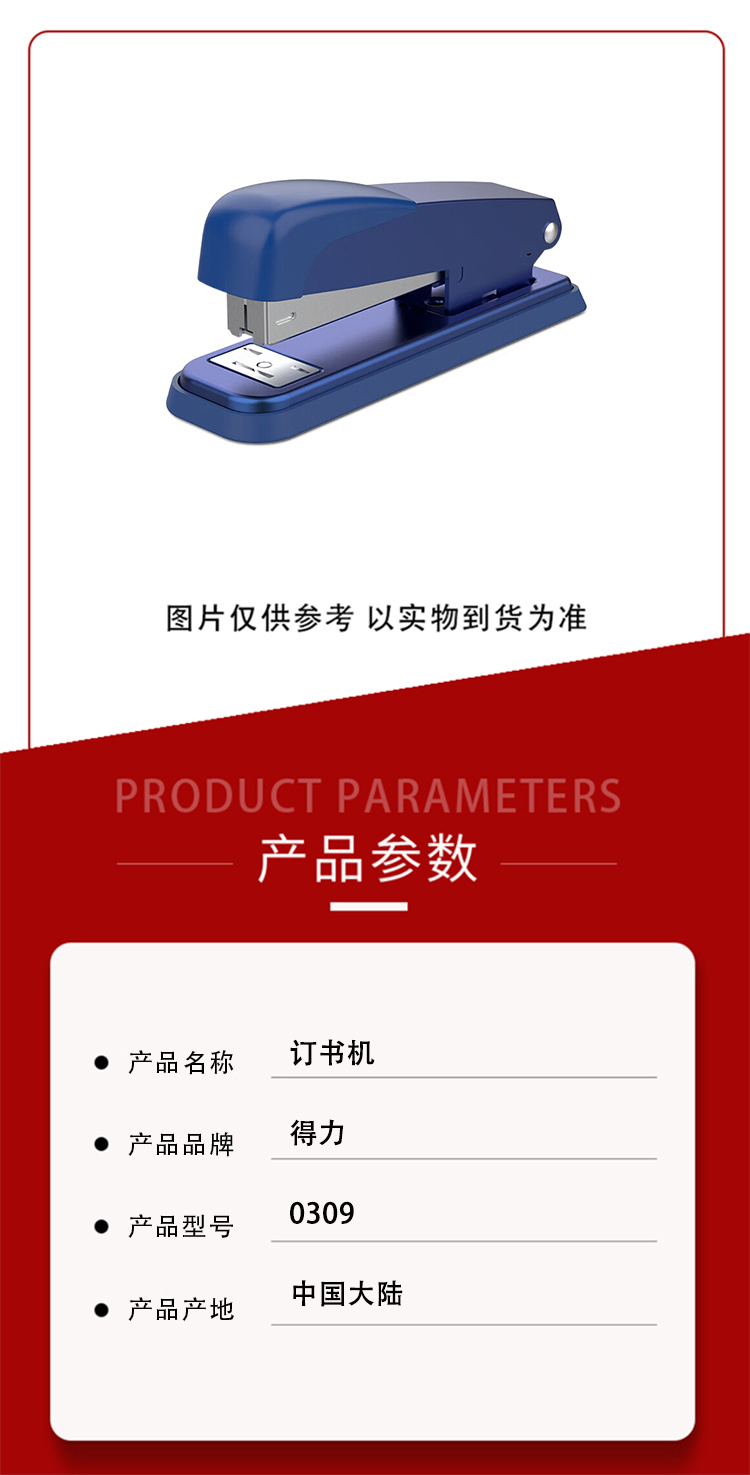 商品名称:得力 0309 12号 订书机 蓝色(单位:个)