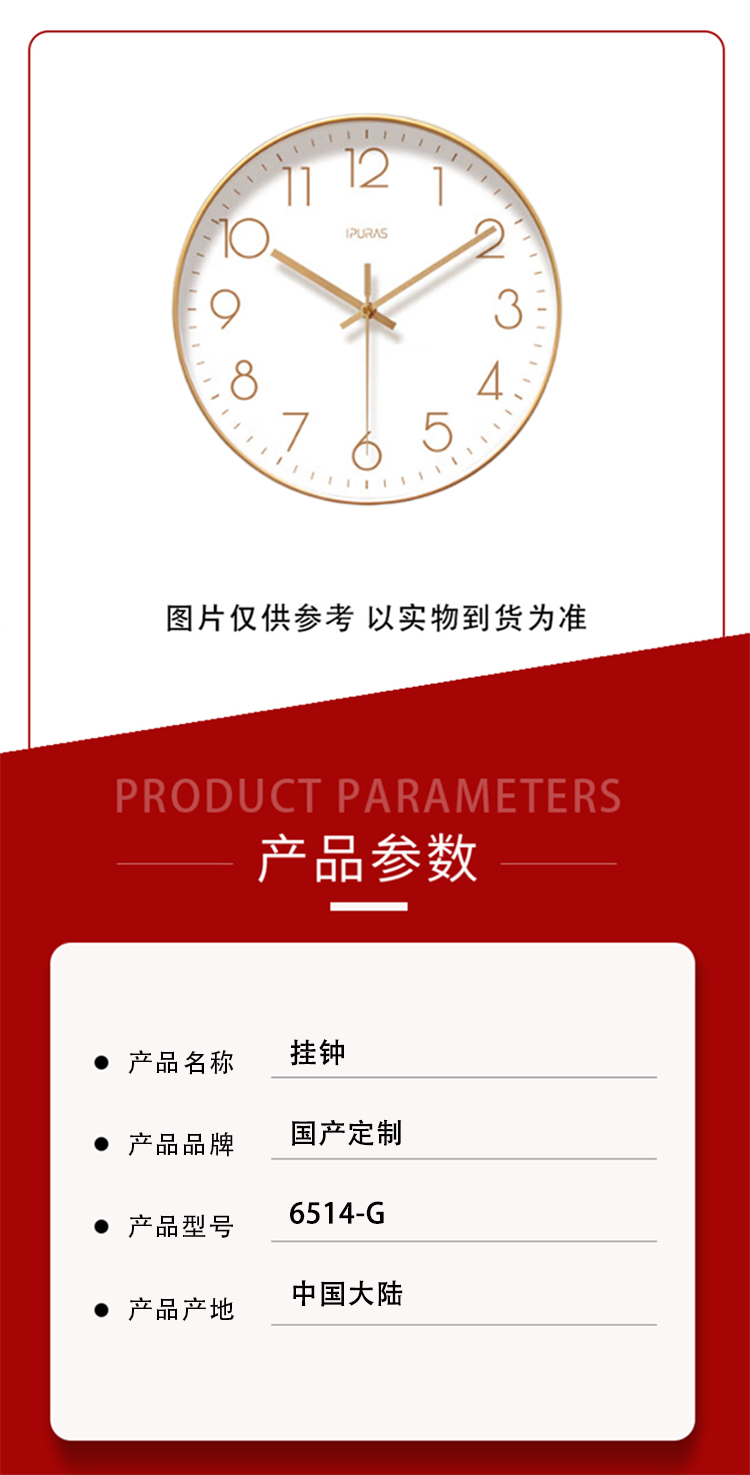 商品名称:国产定制 6514-G 金框 10英寸 挂钟(单位:个)