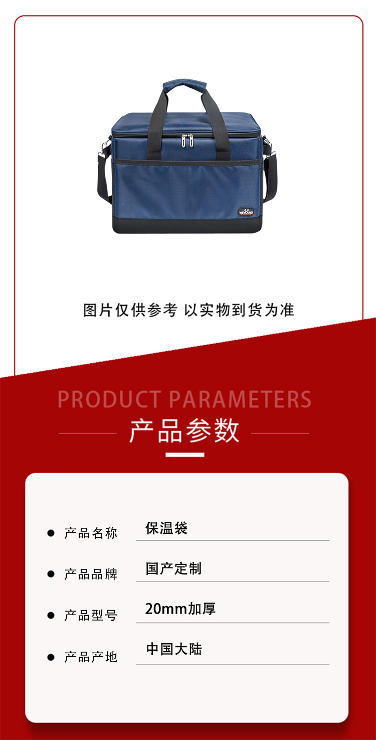 商品名称:国产定制 20mm加厚 10L 保温袋 藏青色(单位:个)