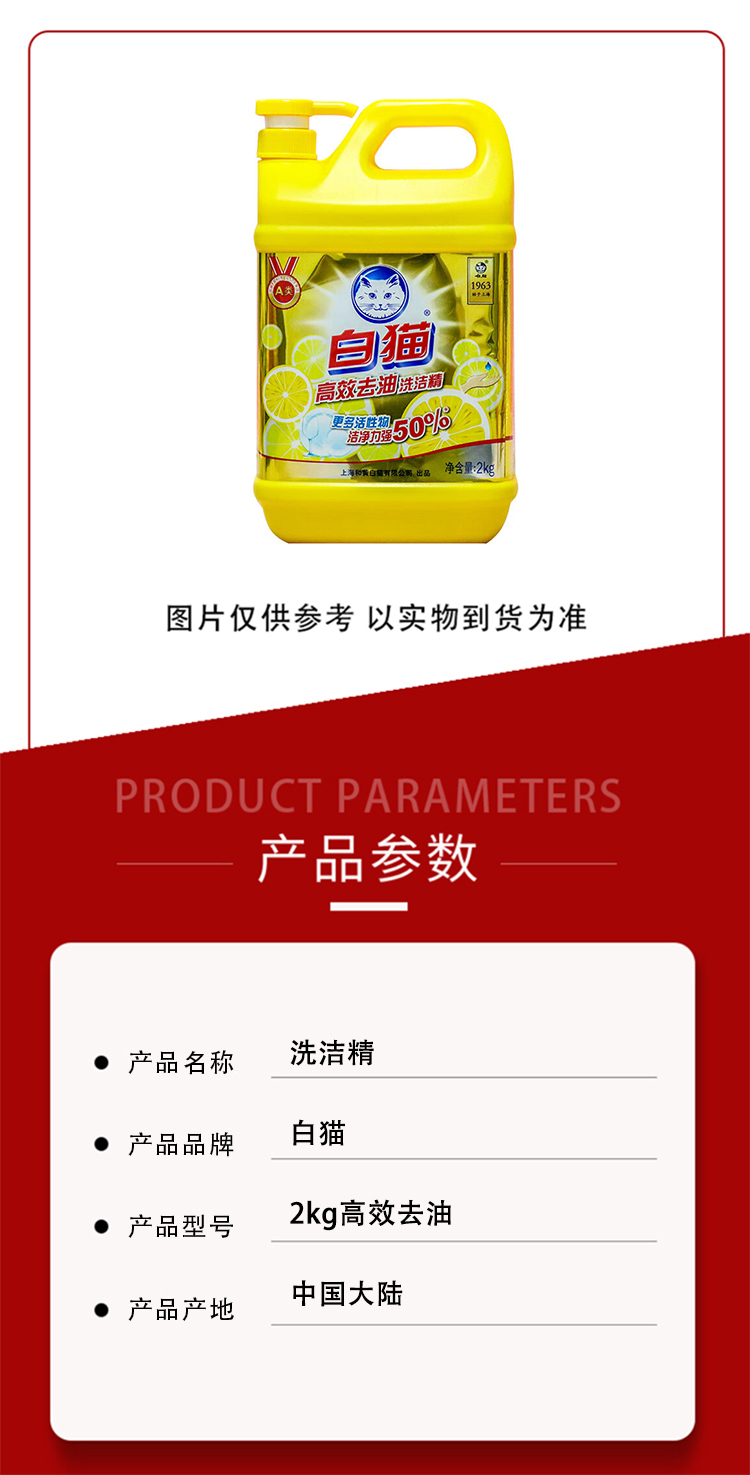 商品名称:白猫 2kg高效去油 8桶 洗洁精(单位:箱)