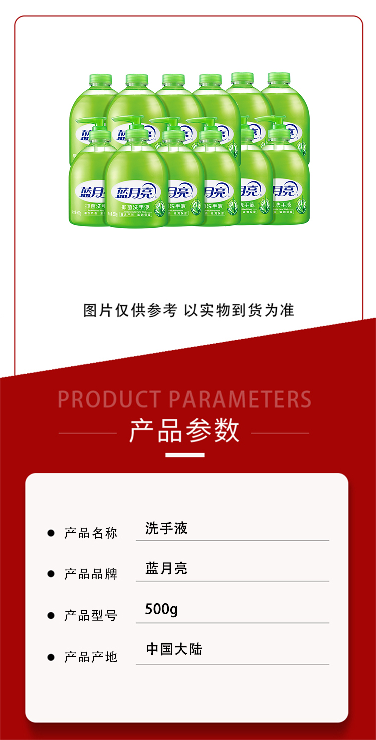 商品名称:蓝月亮 500g 12瓶 洗手液(单位:箱)