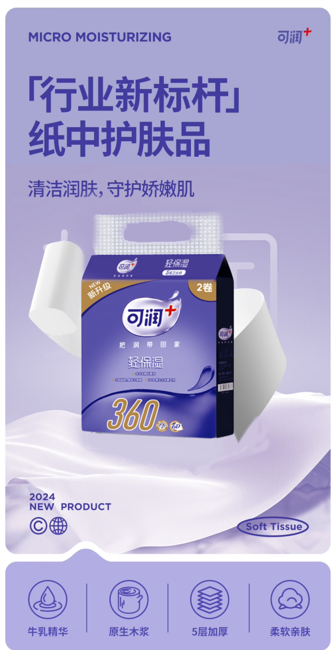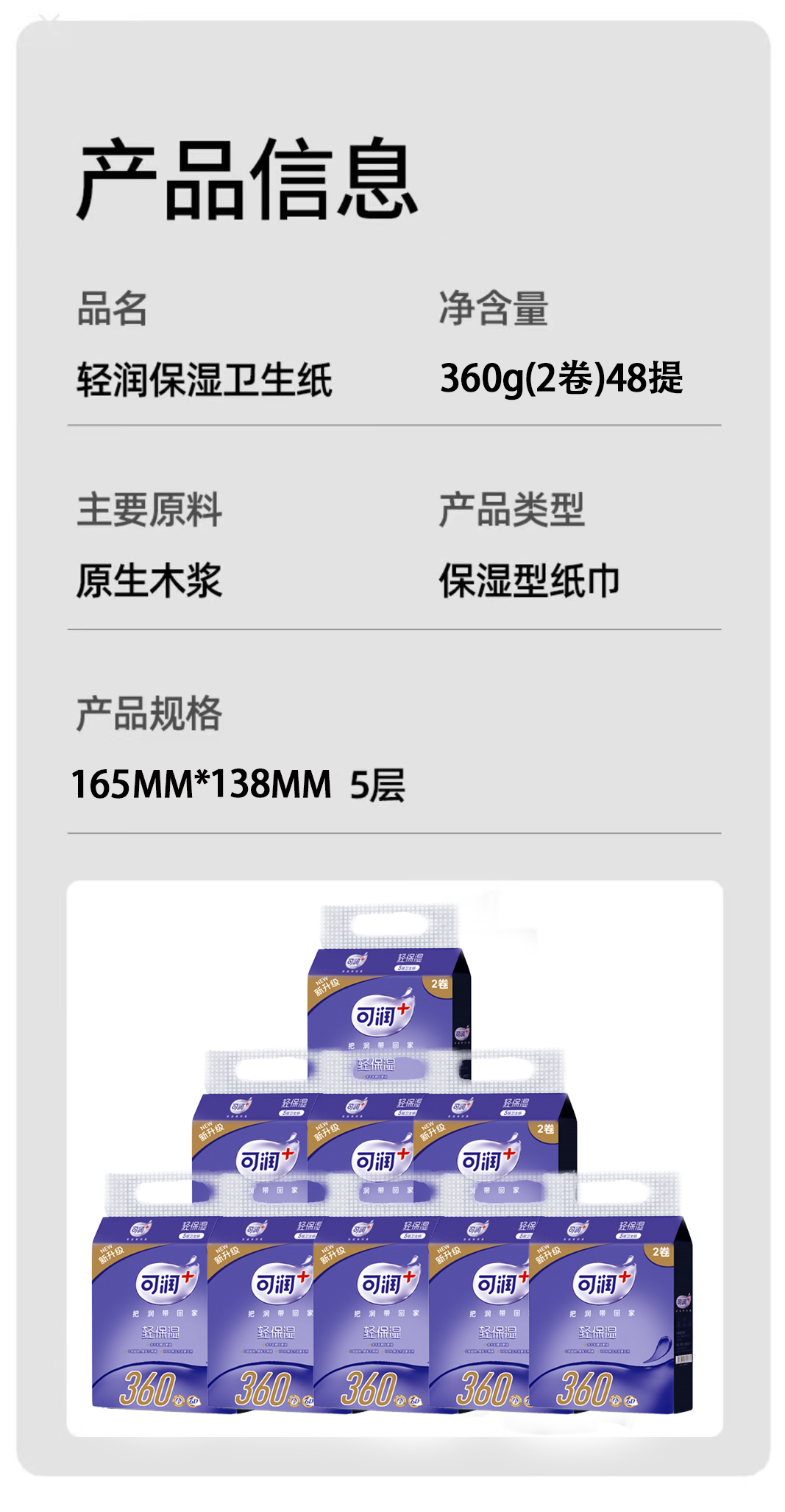 商品名称:可润KRWX001-48轻保湿无芯360克卷纸*24
