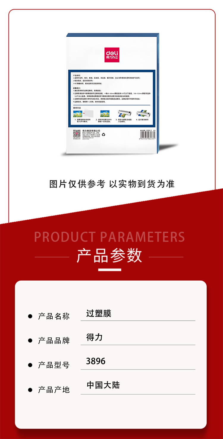 商品名称:得力 3896 A3 过塑膜(单位:套)