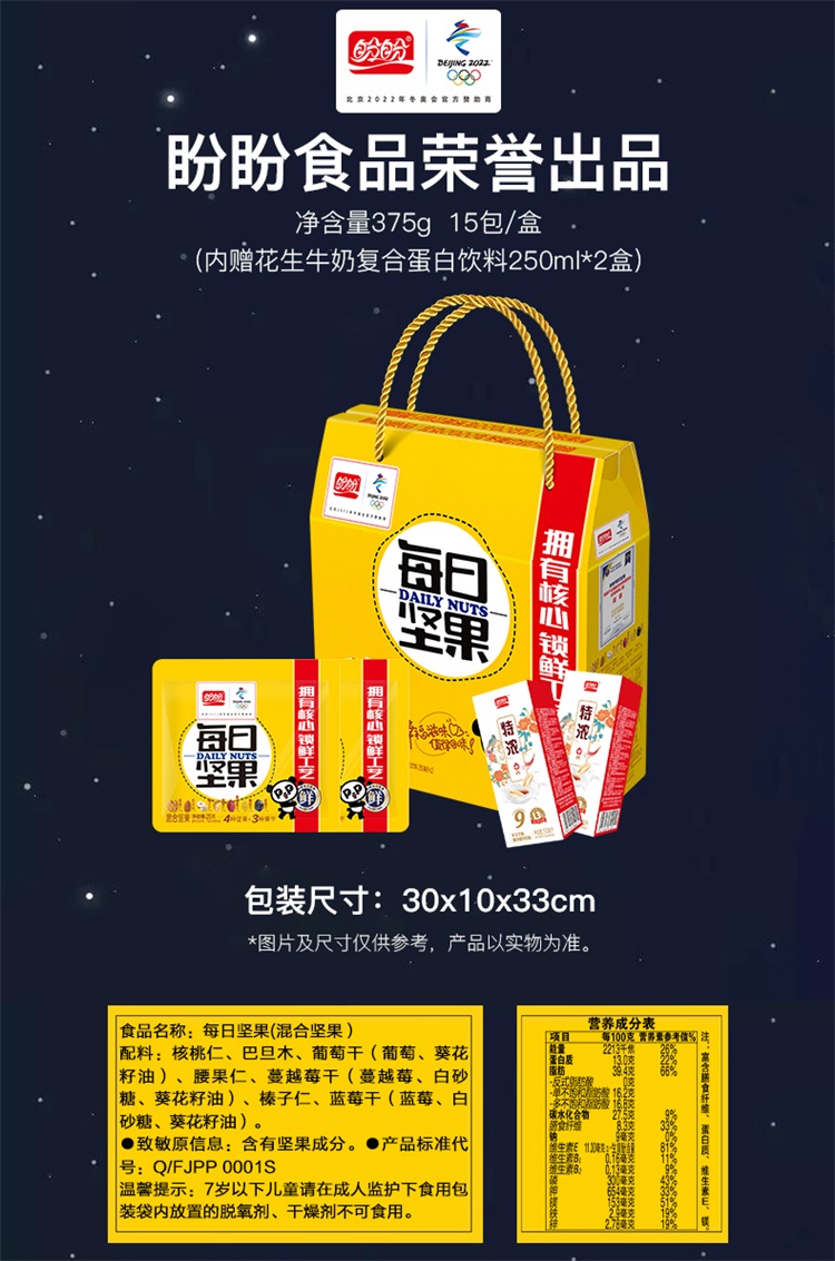 商品名称:GG盼盼每日坚果礼盒(赠250ml花生牛奶)综合口味-375g(906858)