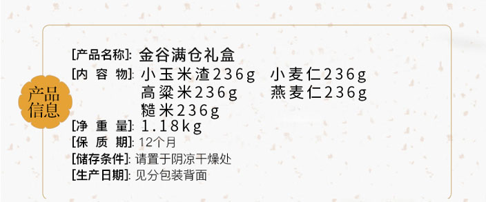 商品名称:燕之坊 金谷满仓1.18kg 1.18kg/提 金谷满仓 蓝色(单位:提)