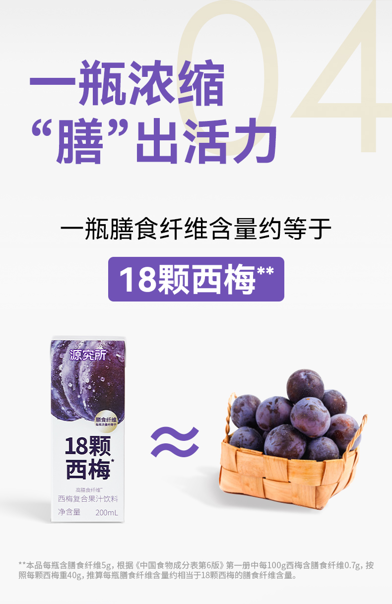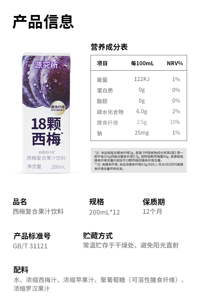 商品名称:源究所果汁 6974754740175 200ML*12瓶 源究所西梅复合果汁高膳食纤维0脂便秘救星复合浓缩果汁饮料(单位:箱)
