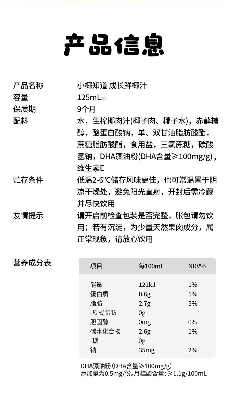 商品名称:椰子知道儿童成长鲜椰汁125ml*16(iP款礼盒)