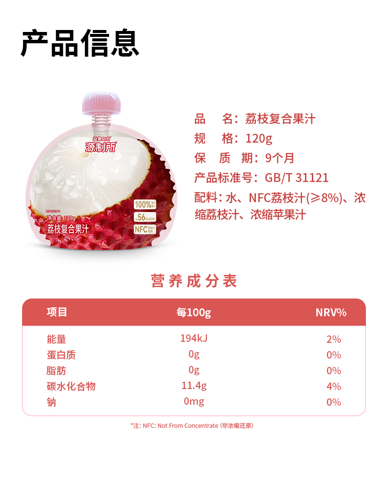 商品名称:源制所 荔枝 120g*20袋 复合果汁饮料(单位:袋)