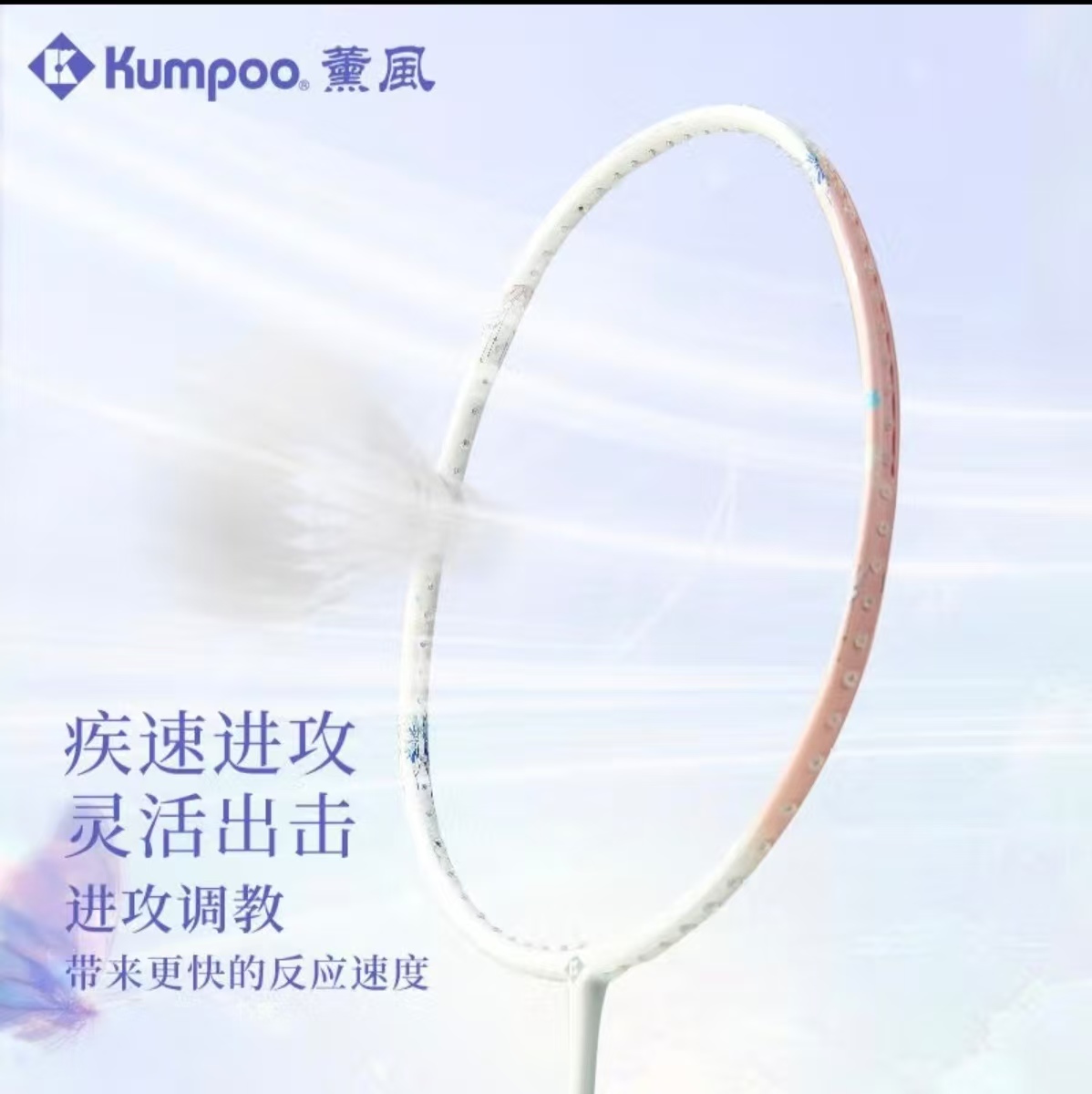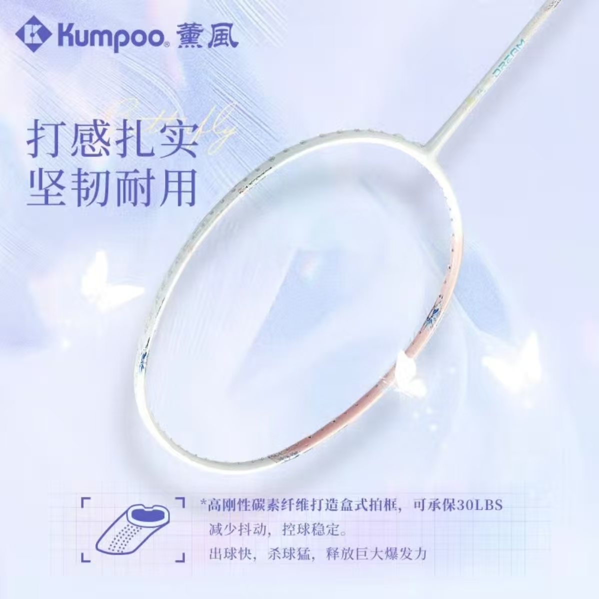 商品名称:熏风 梦蝶 5U/G6/30磅全碳素拍 羽毛球拍 白色/粉色(单位:支)