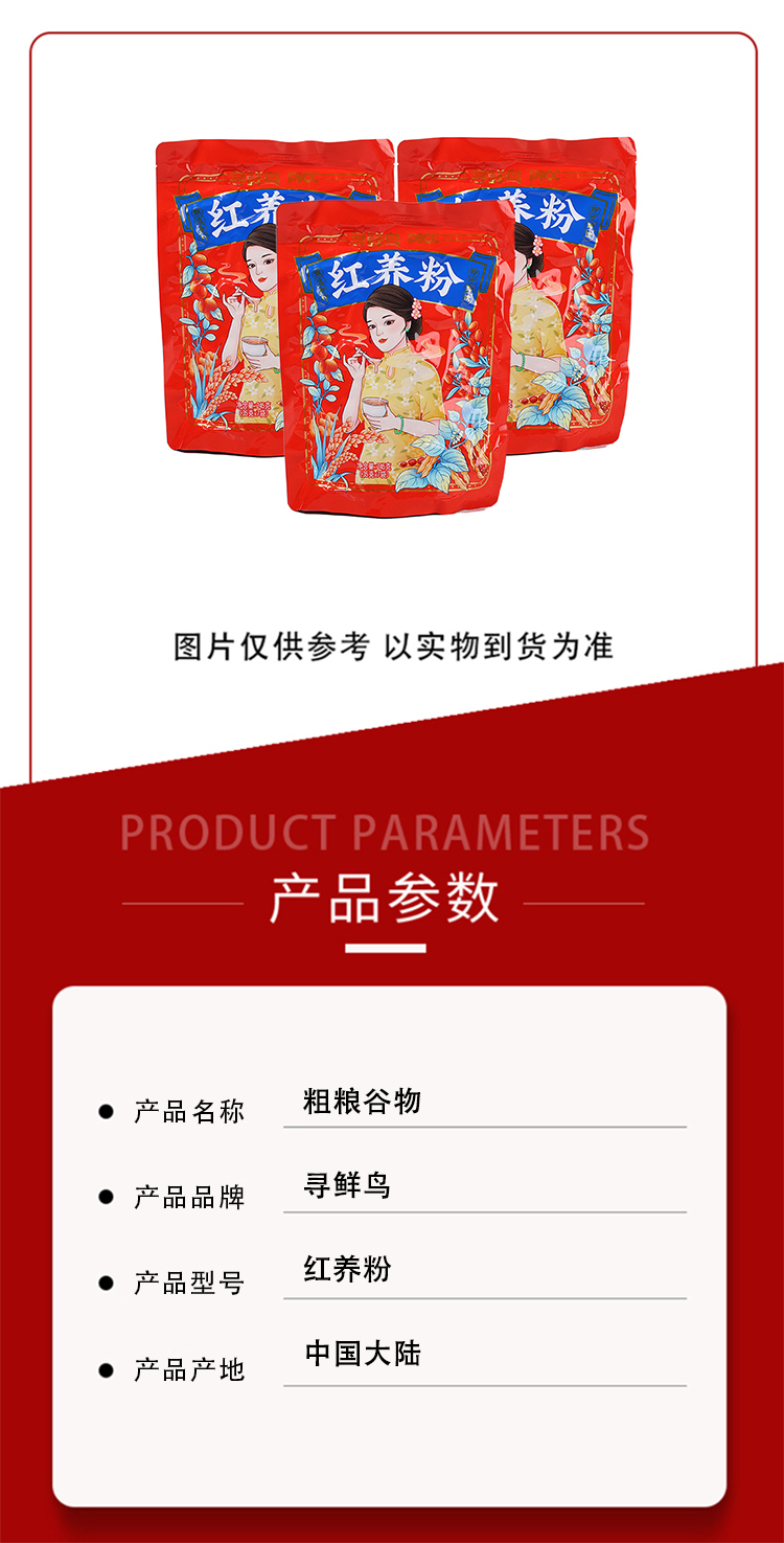 商品名称:寻鲜鸟 红养粉 7条/袋*3袋装 粗粮谷物(单位:组)