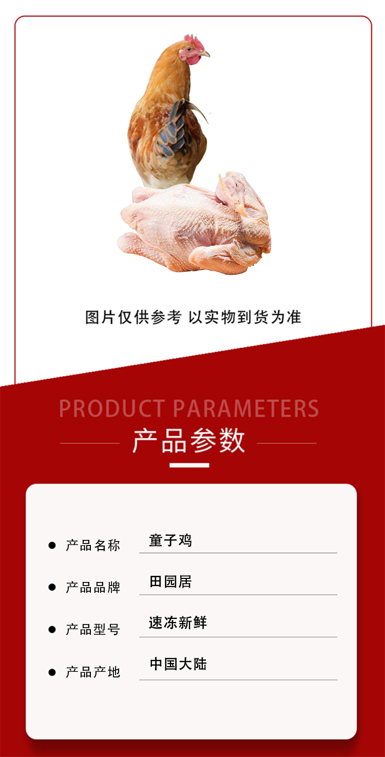 商品名称:田园居 速冻新鲜 750g*2只装 童子鸡(单位:组)