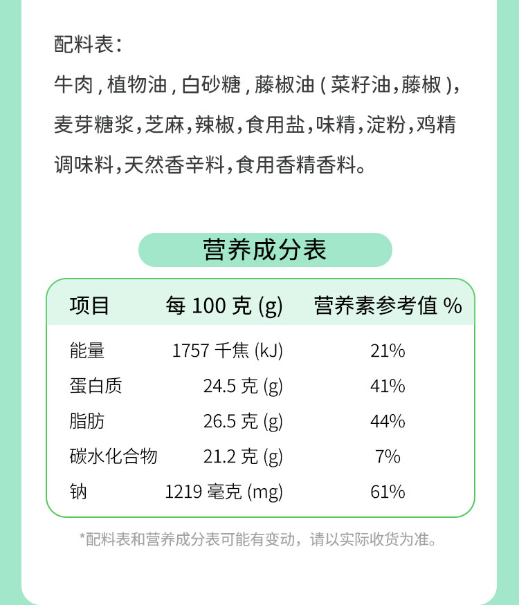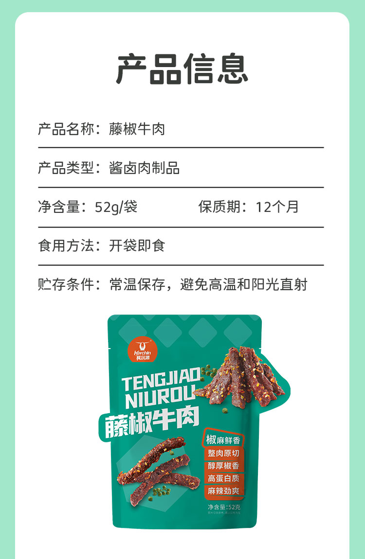 商品名称:科尔沁藤椒牛肉52g*3/组
