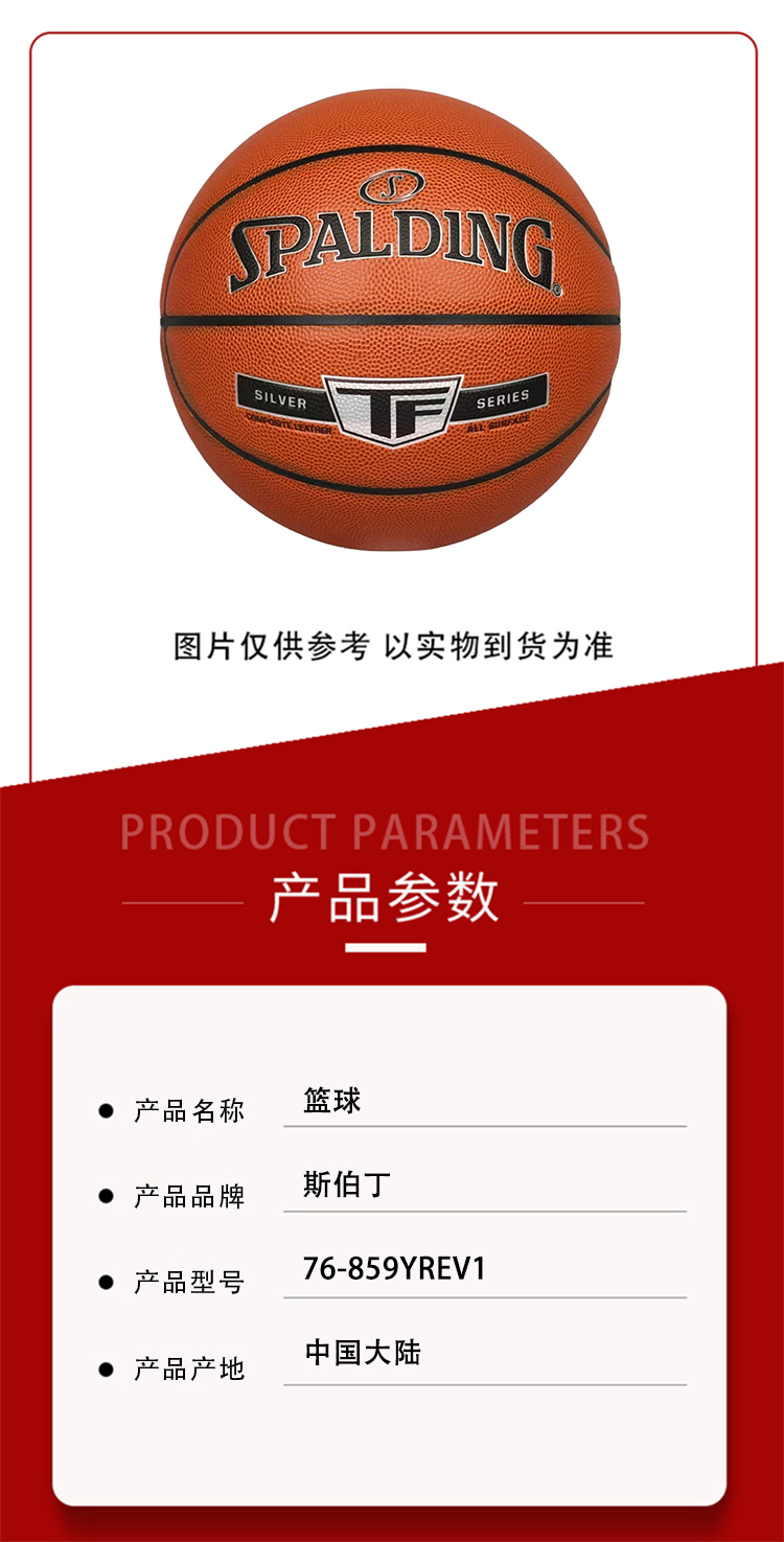 商品名称:斯伯丁 76-859YREV1 7#PU/259 篮球 红棕(单位:个)