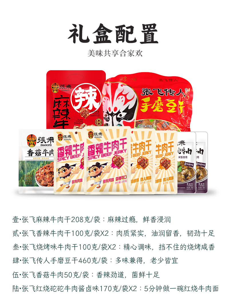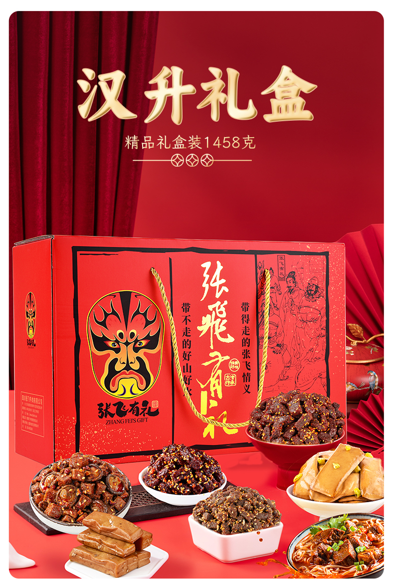 商品名称:张飞牛肉汉升礼盒1458g/盒