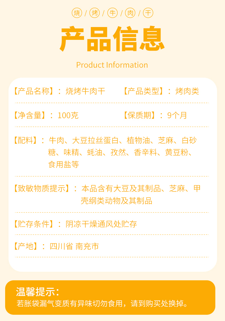商品名称:张飞烧烤味牛肉干卡通版100g*3/组