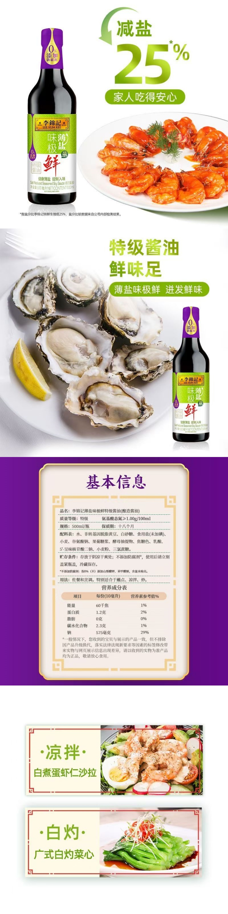商品名称:李锦记 薄盐味极鲜 500ml 酱油(单位:组)