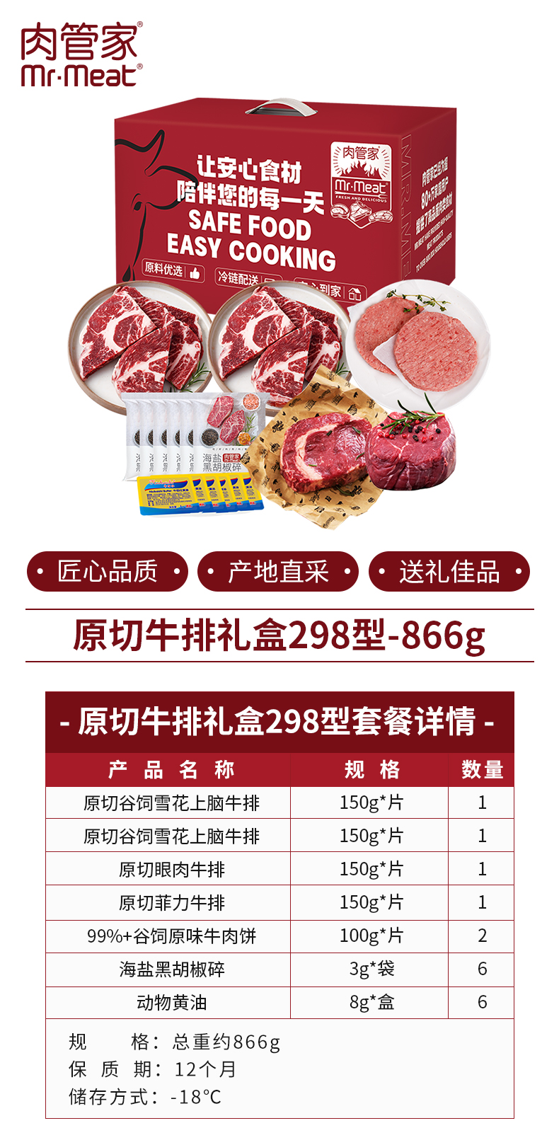商品名称:肉管家 肉管家原切牛排礼盒 866g 298型(单位:份)