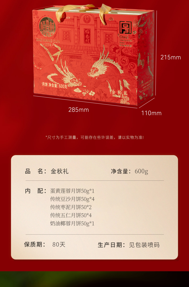 商品名称:稻香村 金秋礼 600g 月饼礼盒(单位:盒)