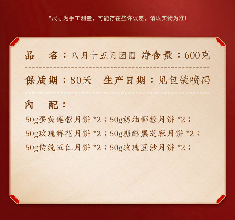 商品名称:稻香村 八月十五团圆礼 600g 月饼礼盒(单位:盒)