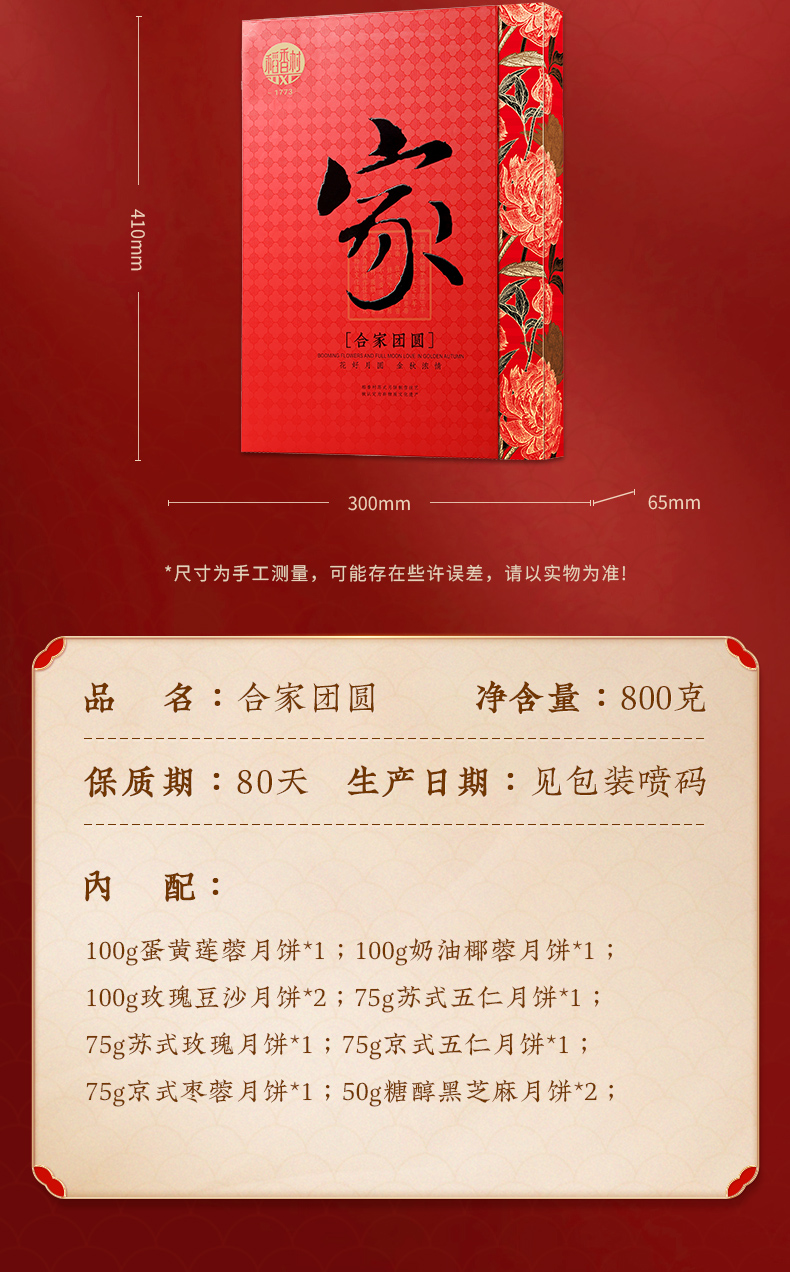 商品名称:稻香村 合家团圆 800g 月饼礼盒(单位:盒)