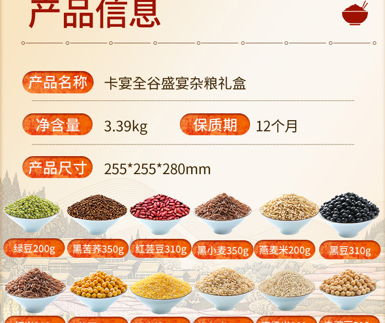 商品名称:卡宴 全谷盛宴 3390g 杂粮礼盒(单位:盒)