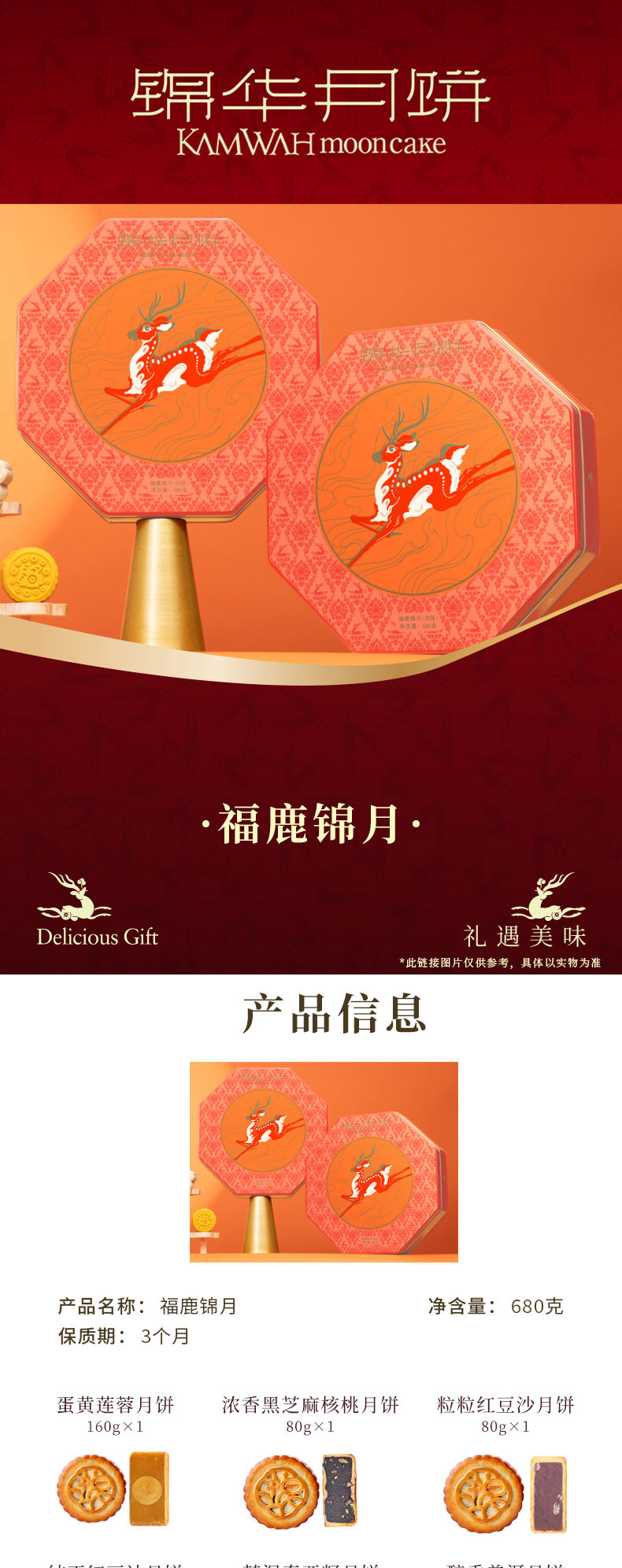 商品名称:锦华 福鹿锦月 680g 月饼礼盒(单位:盒)