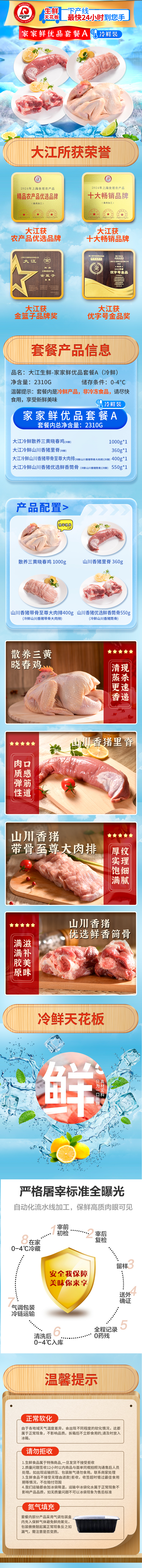 商品名称:大江 大江生鲜-家家鲜优品套餐A(冷鲜) 2310g (单位:份)