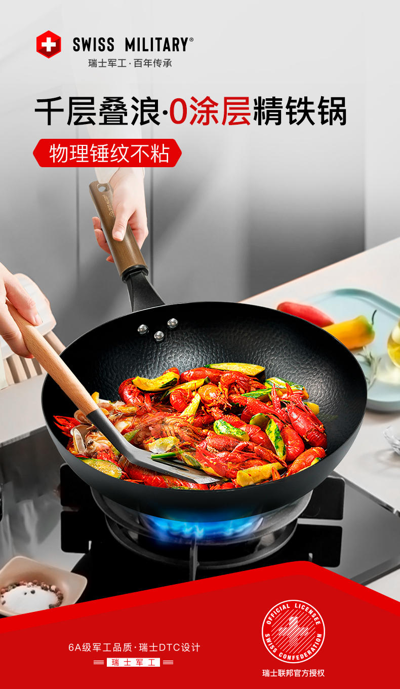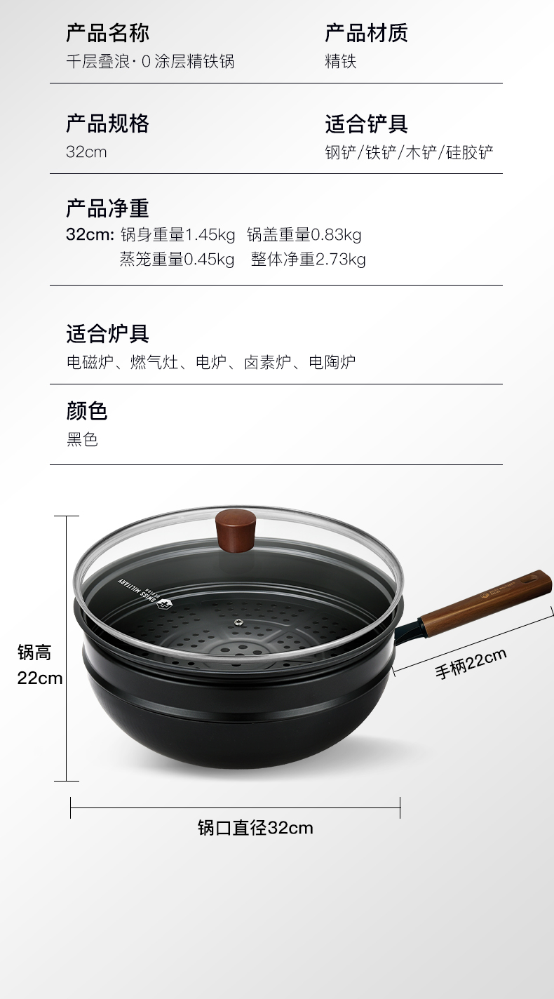 商品名称:SWISS MILITARY TC4332 0涂层精铁锅(带蒸格)32cm (单位:个)