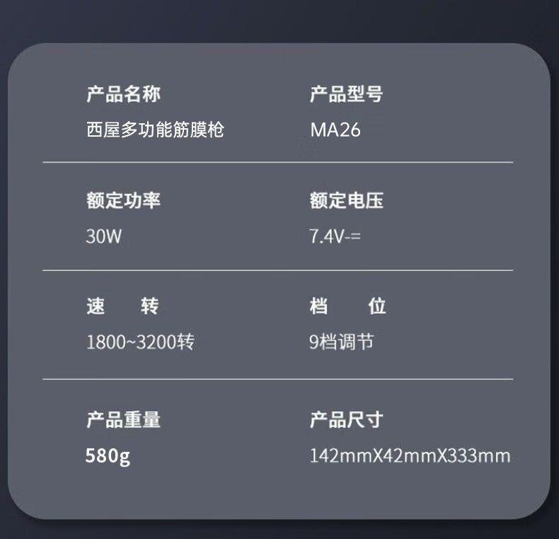 商品名称:西屋 MA26 专业级便携可拆卸加长手柄筋膜枪(单位:个)
