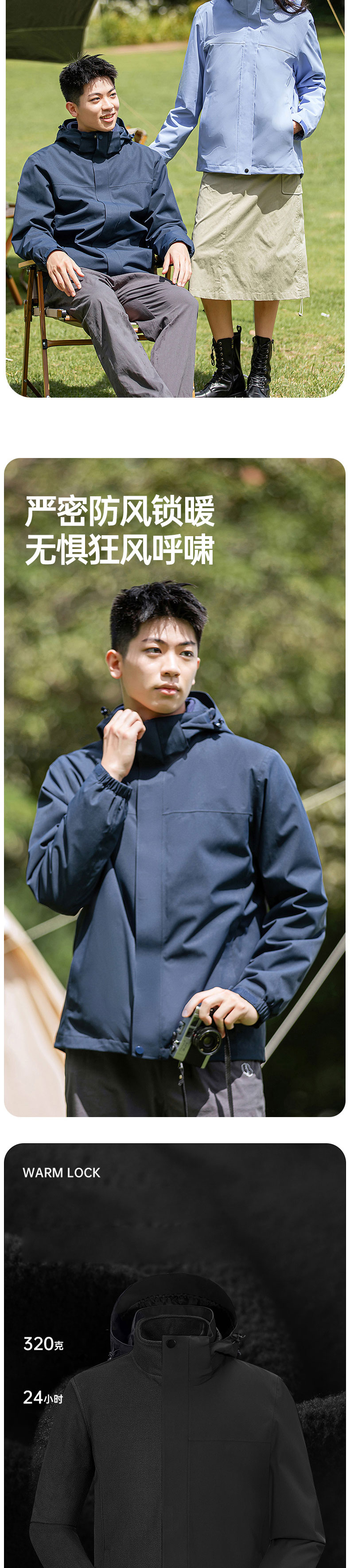 商品名称:三极户外 TP8447 男女同款2XL码 摇粒绒内胆三合一冲锋衣 幻影黑(单位:件)