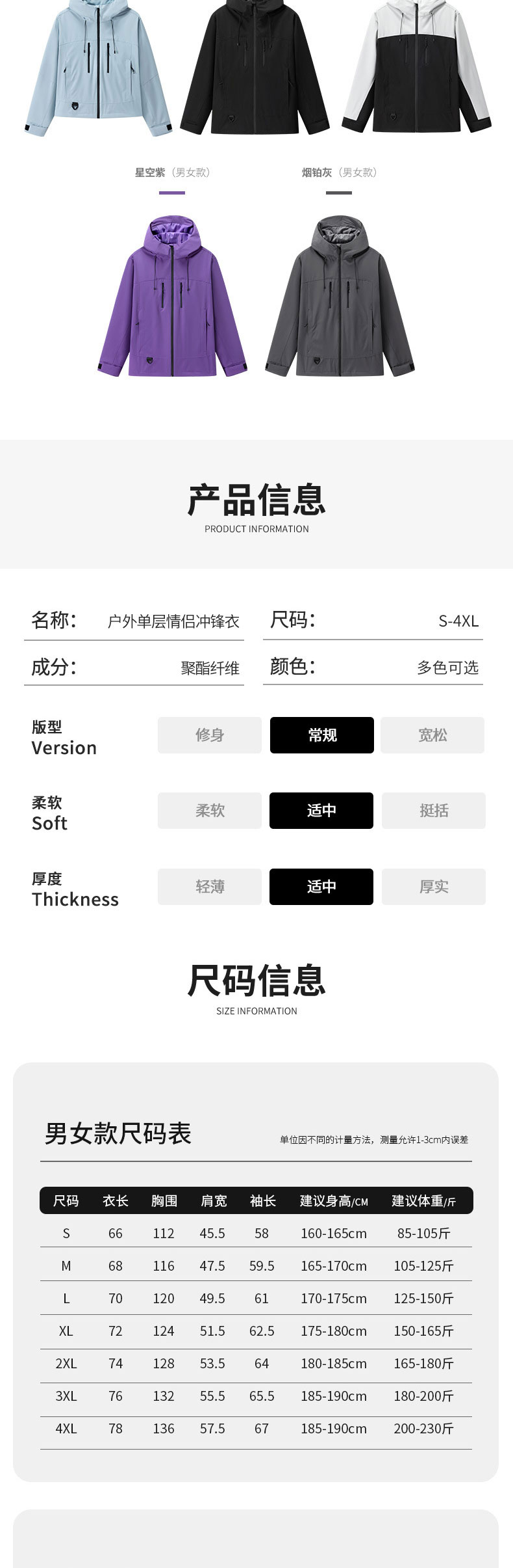 商品名称:三极户外 TP8467 男女同款XL码 单层冲锋衣 冰川灰(单位:件)