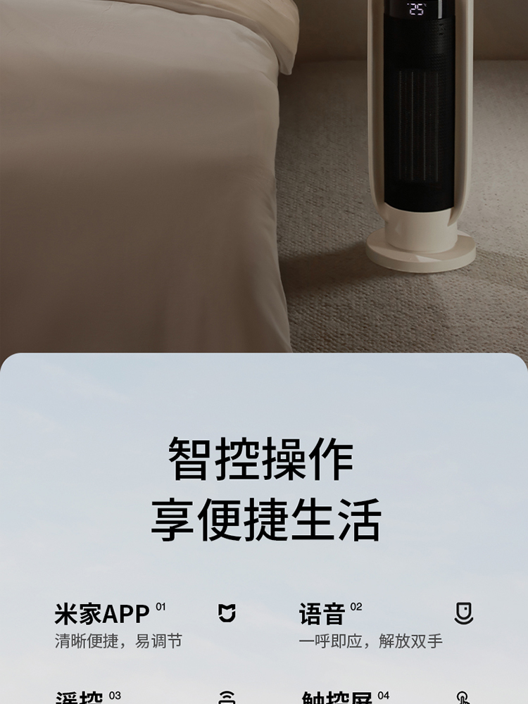 美的(Midea) NTH22-18AR 电暖器烤火炉暖风机客厅卧室办公室遥控温度显示无光安全节能立式 (线下同款)