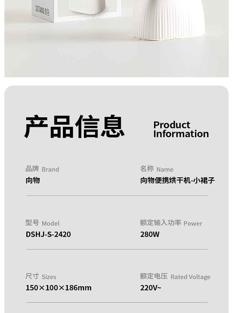 商品名称:向物DSHJ-S-2420-便携烘干机-小裙子