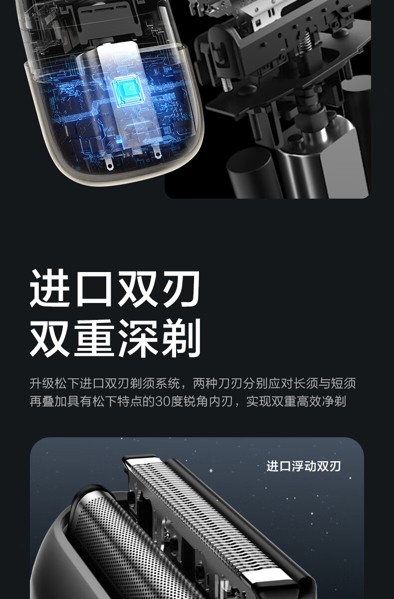 商品名称:松下 ES-CM2A 63.6*28.5*89mm 配2个刀头 130g 剃须刀 香槟色(单位:台)