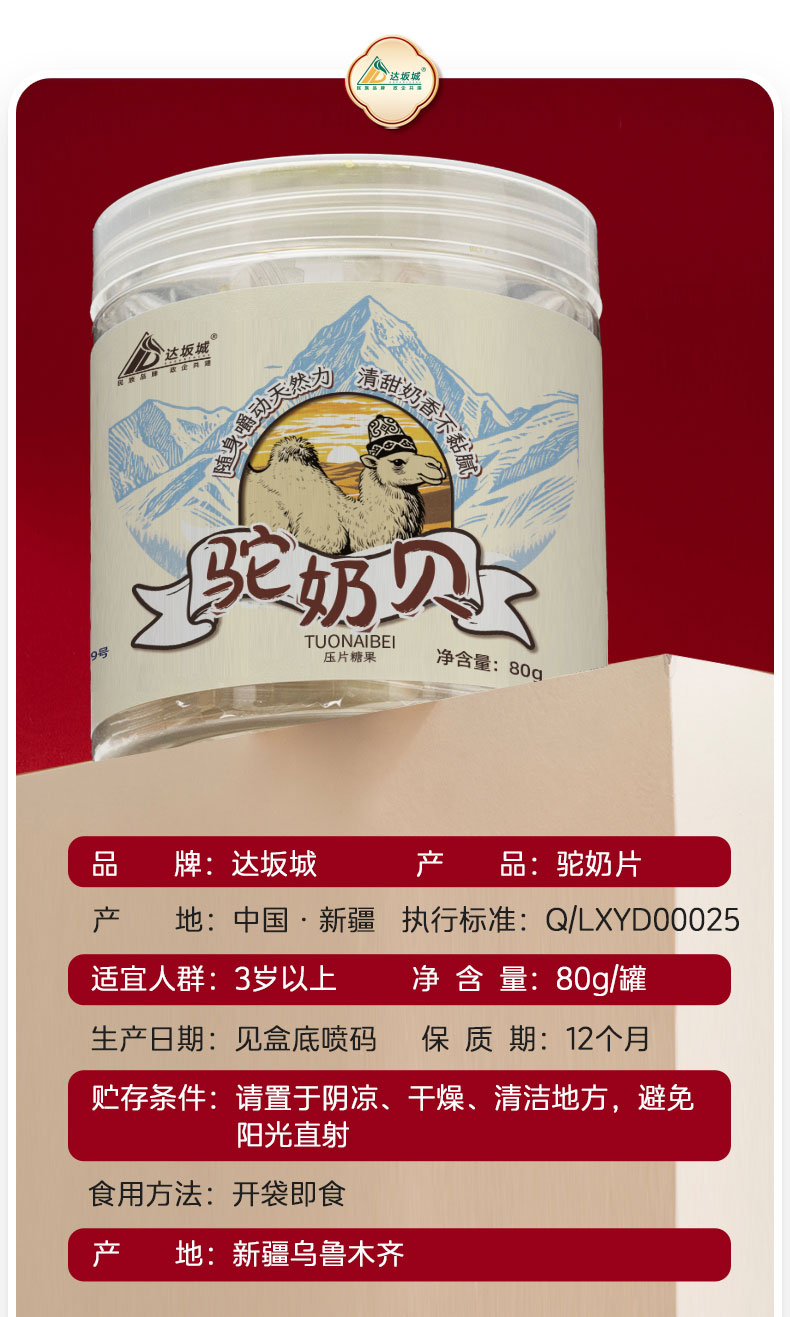 商品名称:达坂城 压片糖果 80G/罐*2罐/组 驼奶贝(单位:组)
