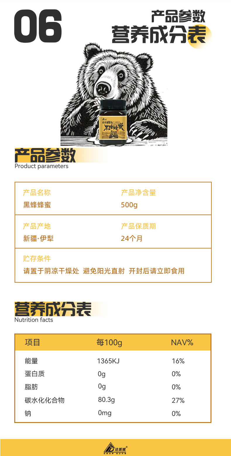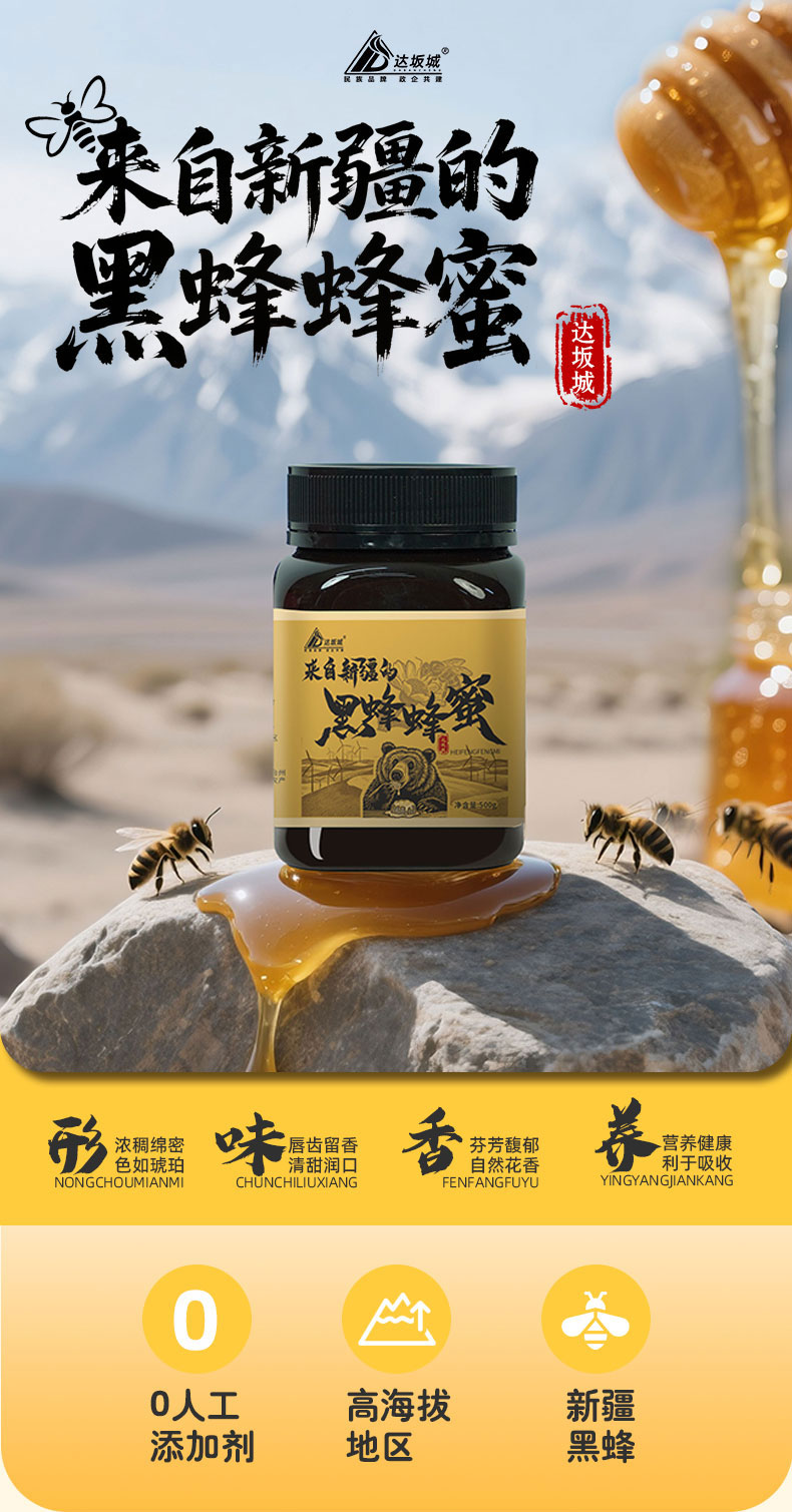 商品名称:达坂城 来自新疆的 500G/罐 黑蜂蜂蜜(单位:罐)