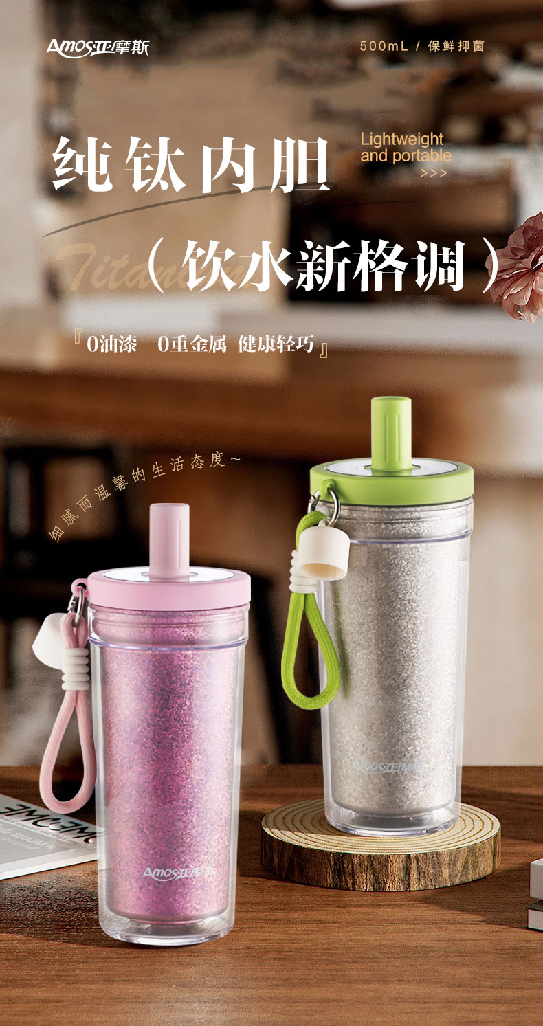 商品名称:亚摩斯 纯钛咖啡杯 500ml 随机发货 银色、红色(单位:份)