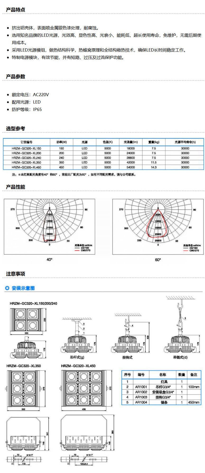 商品名称:华荣 LED灯 HRZM-GC320-XL350,350W 发光角 60°白光,5000K 挂钩式,单位:个