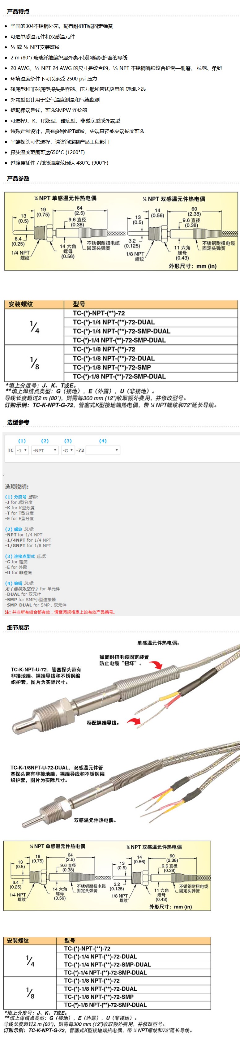 商品名称:OMEGA J型碰底型管塞式探头,TC-J-NPT-G-72