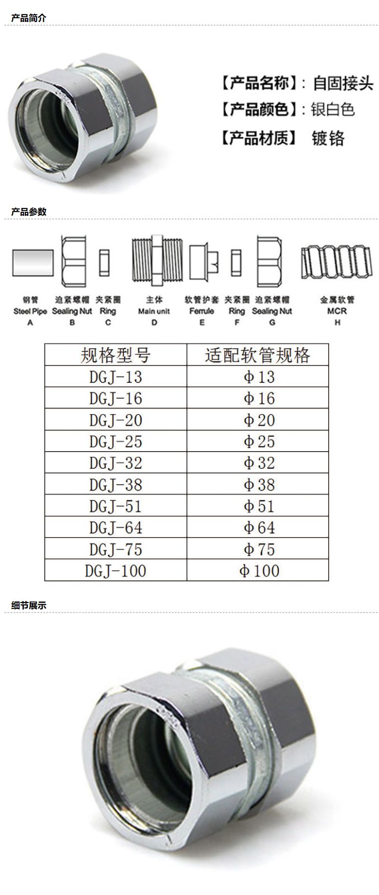 商品名称:长虹塑料 DGJ金属接头,DGJ-75,配套φ75金属软管使用