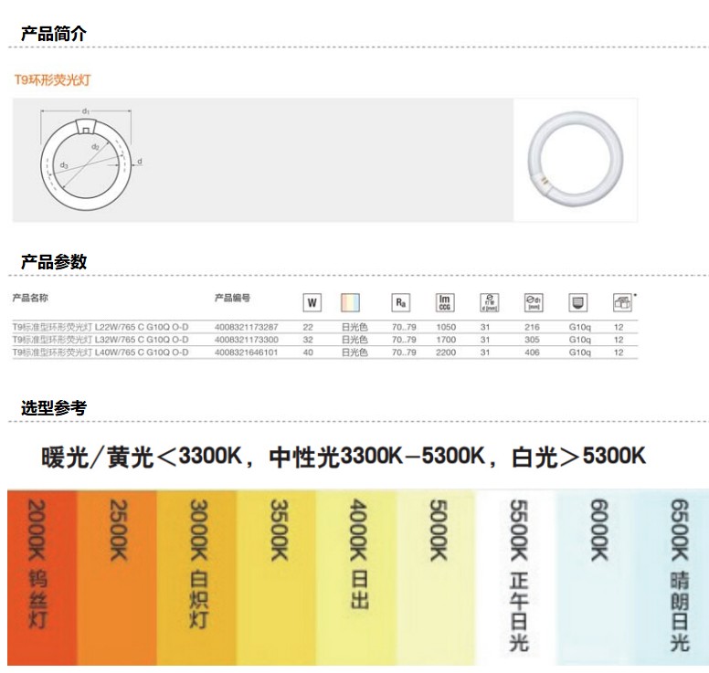 商品名称:欧司朗环形节能荧光灯管吸顶灯T9环管 22W/765 三基色 电梯灯管 粗管,单位:个