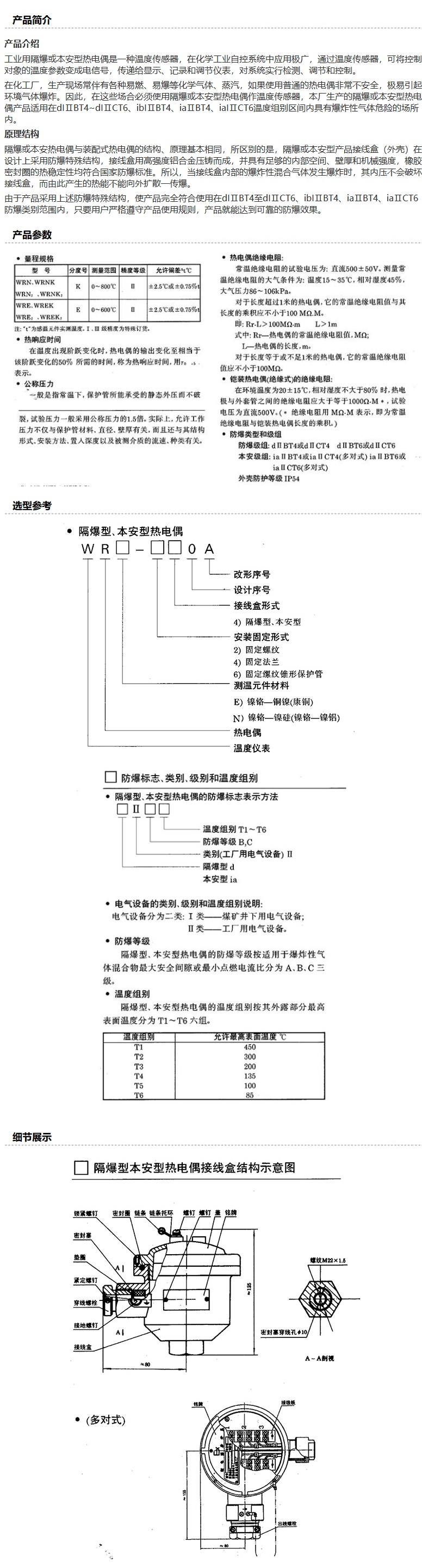 商品名称:上仪 隔爆热电偶,WRN-240A(dⅡBT4) 单支 316L 450×300mm M16×1.5