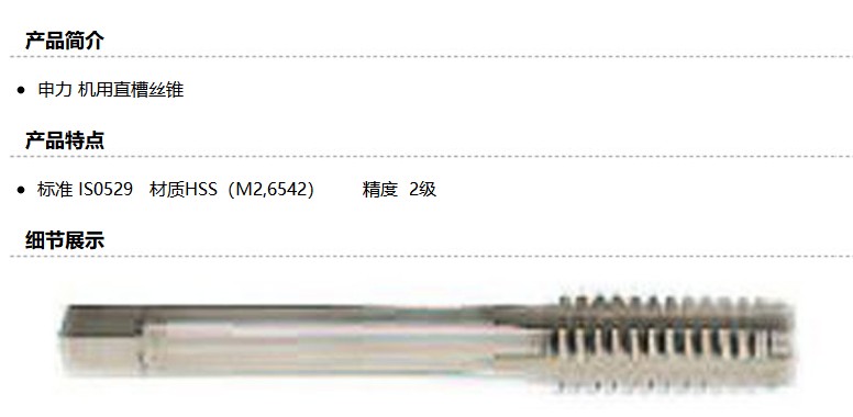 商品名称:申利 全磨制机用直槽丝锥,BS 2.1/16-12
