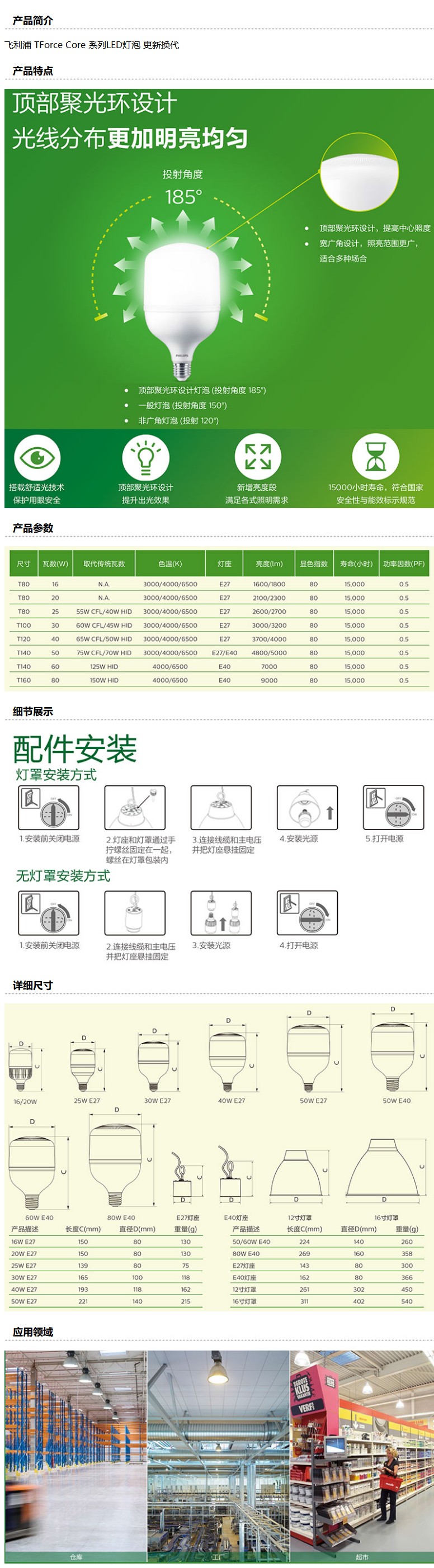 商品名称:飞利浦 LED灯泡 30W E27 黄光830 中低天棚灯泡第3代 TForce Core HB GN3,单位:个