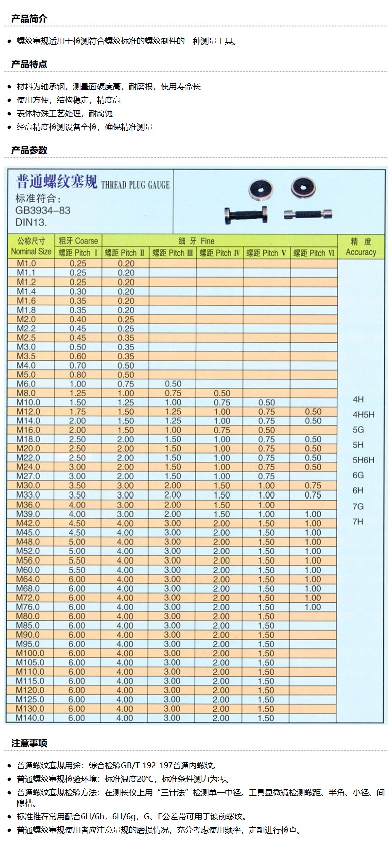 商品名称:公制螺纹塞规,M7*0.75 6H,1把/副,不含第三方检测