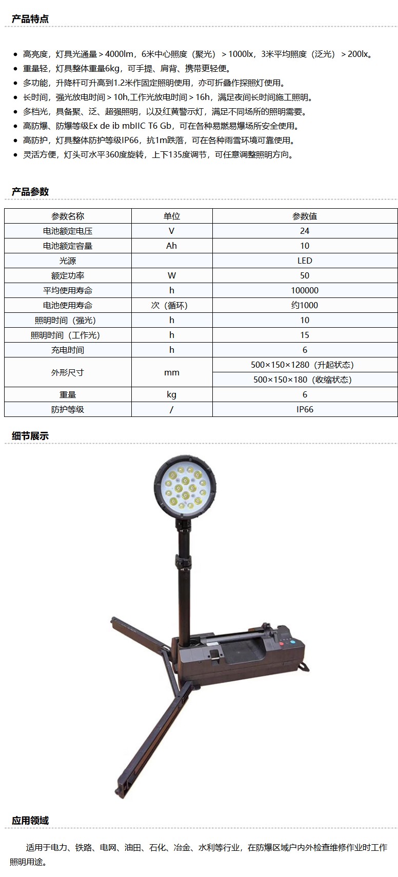 商品名称:颇尔特 50W 防爆移动工作灯 POETAA535,单位:个