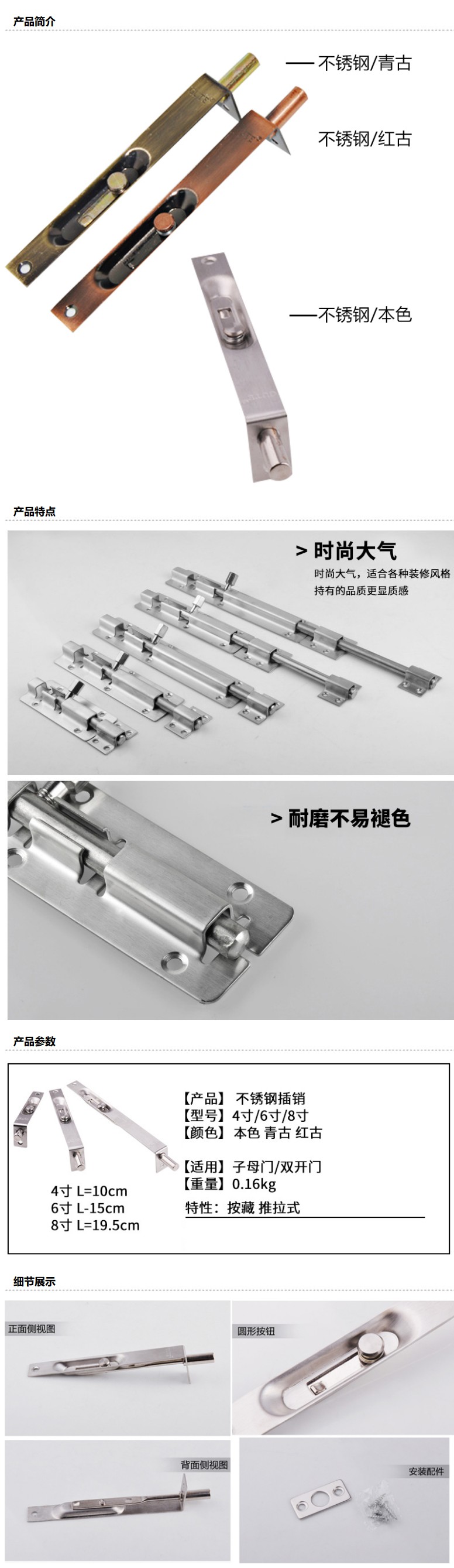商品名称:固特 暗插销,不锈钢/红古,6寸