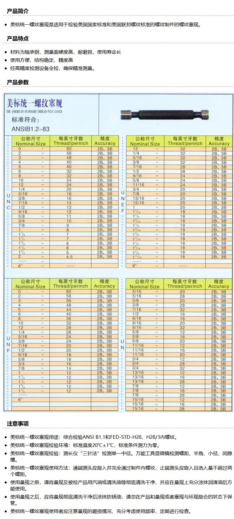 商品名称:美标塞规,3/8-16UNC 2B,1个/副,不含第三方检测